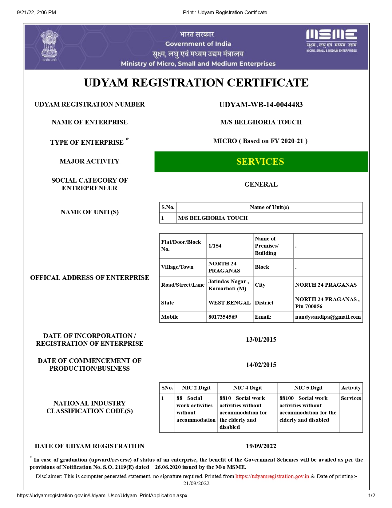 UDYAM REGISTRATION CERTIFICATE